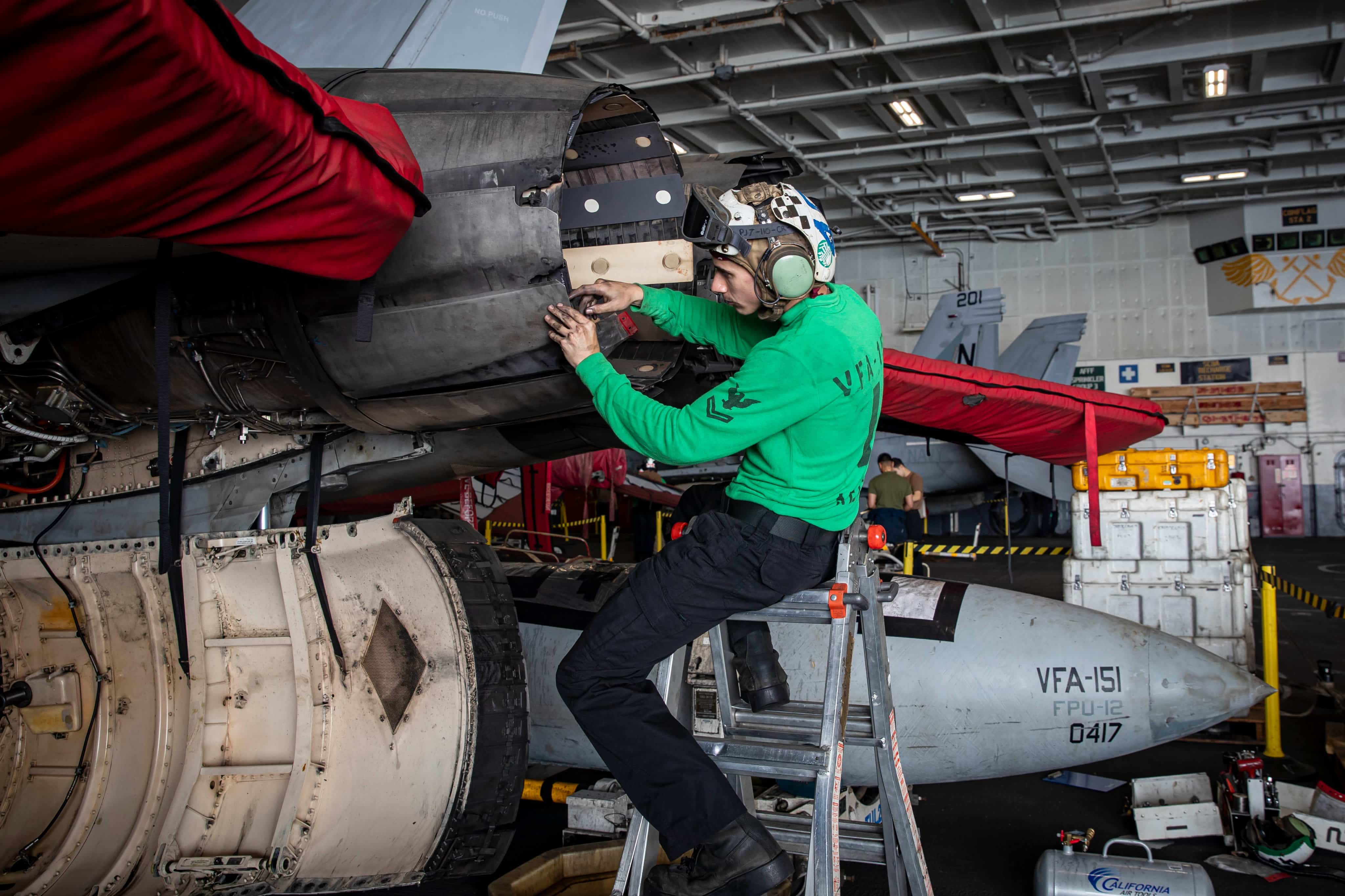 Sailors aboard USS Abraham Lincoln (CVN 72) perform routine maintenance as the aircraft carrier sails in the Indian Ocean, Jan. 26. The Abraham Lincoln Carrier Strike Group is currently deployed to the Middle East to promote regional security and stability. pic.twitter.com/dkuN946hce