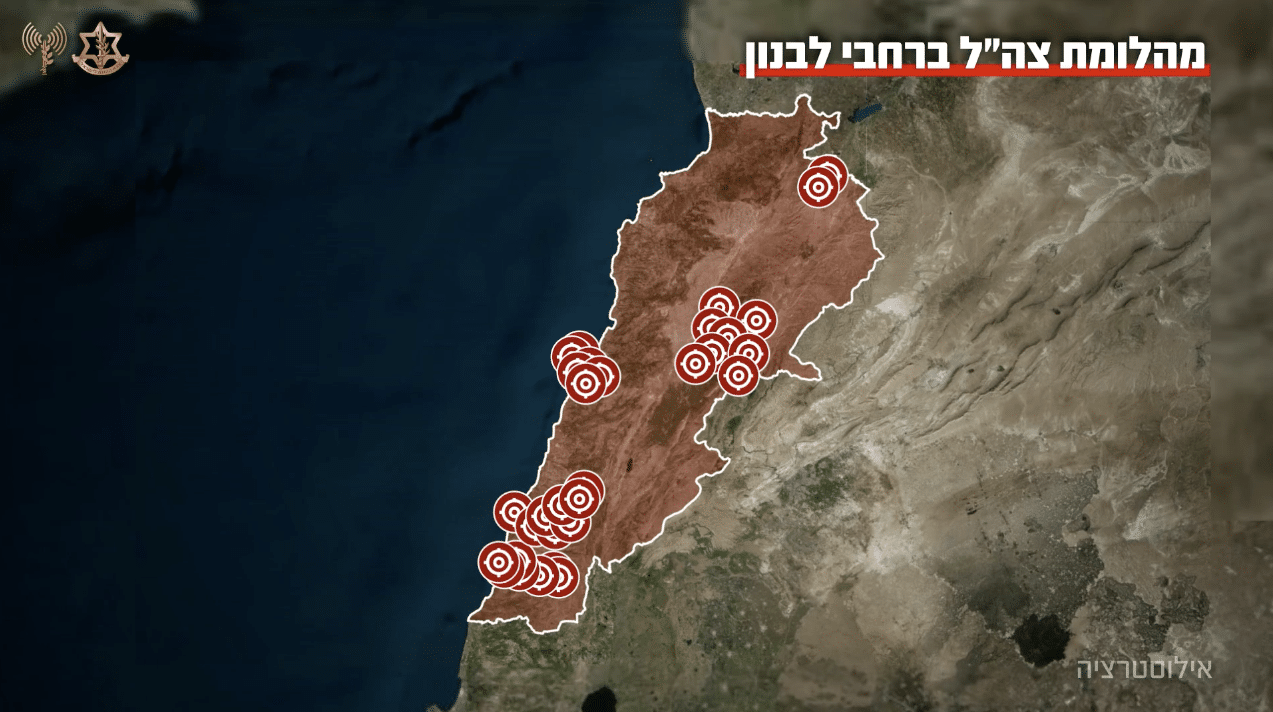 The strike targeted 100+ Hezbollah headquarters, military arrays, & command-and-control centers in Beirut, Beqaa and southern Lebanon, including: