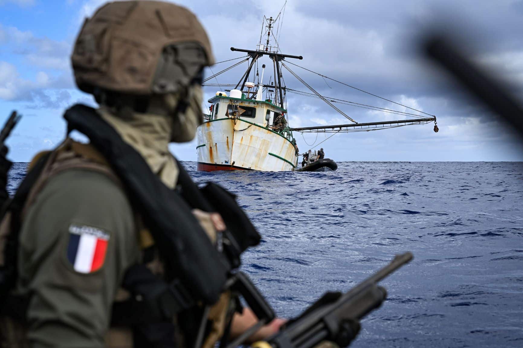 French naval forces intercept a fishing vessel off the coast of West Africa during Operation Corymbe on September 22, 2025. Acting under the authority of the Préfecture maritime et commandement en chef ATLANT (PREMAR-CECLANT) and the Brest prosecutor, the operation led to the seizure of 9.6 tons of cocaine valued at nearly €519 million. (Photo: PREMAR-CECLANT / Marine Nationale via X)