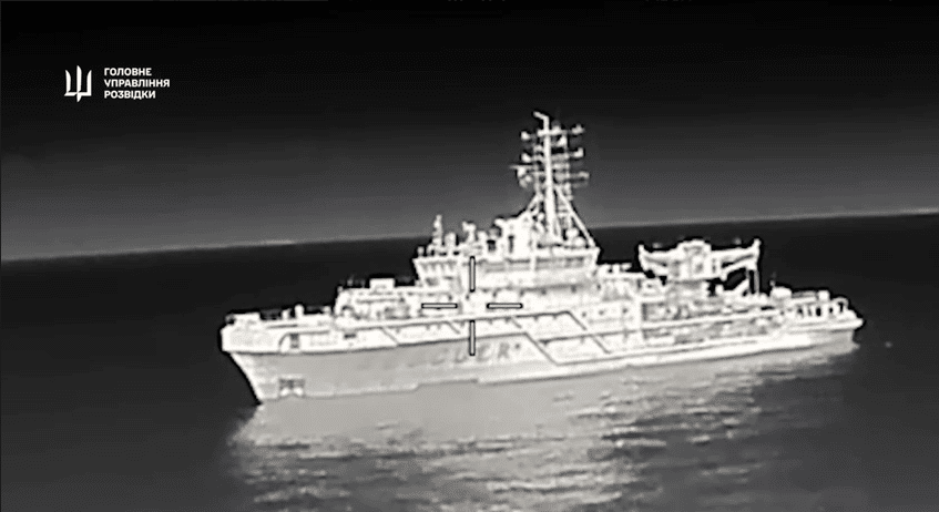 “The GUR operatives delivered a precise strike using a Ukrainian-made combat drone targeting the ship’s bridge, where its navigation and communications equipment are located,” GUR said. “As a result of the strike, the ship’s electronic warfare systems were destroyed, and the vessel was put out of action for costly repairs.”