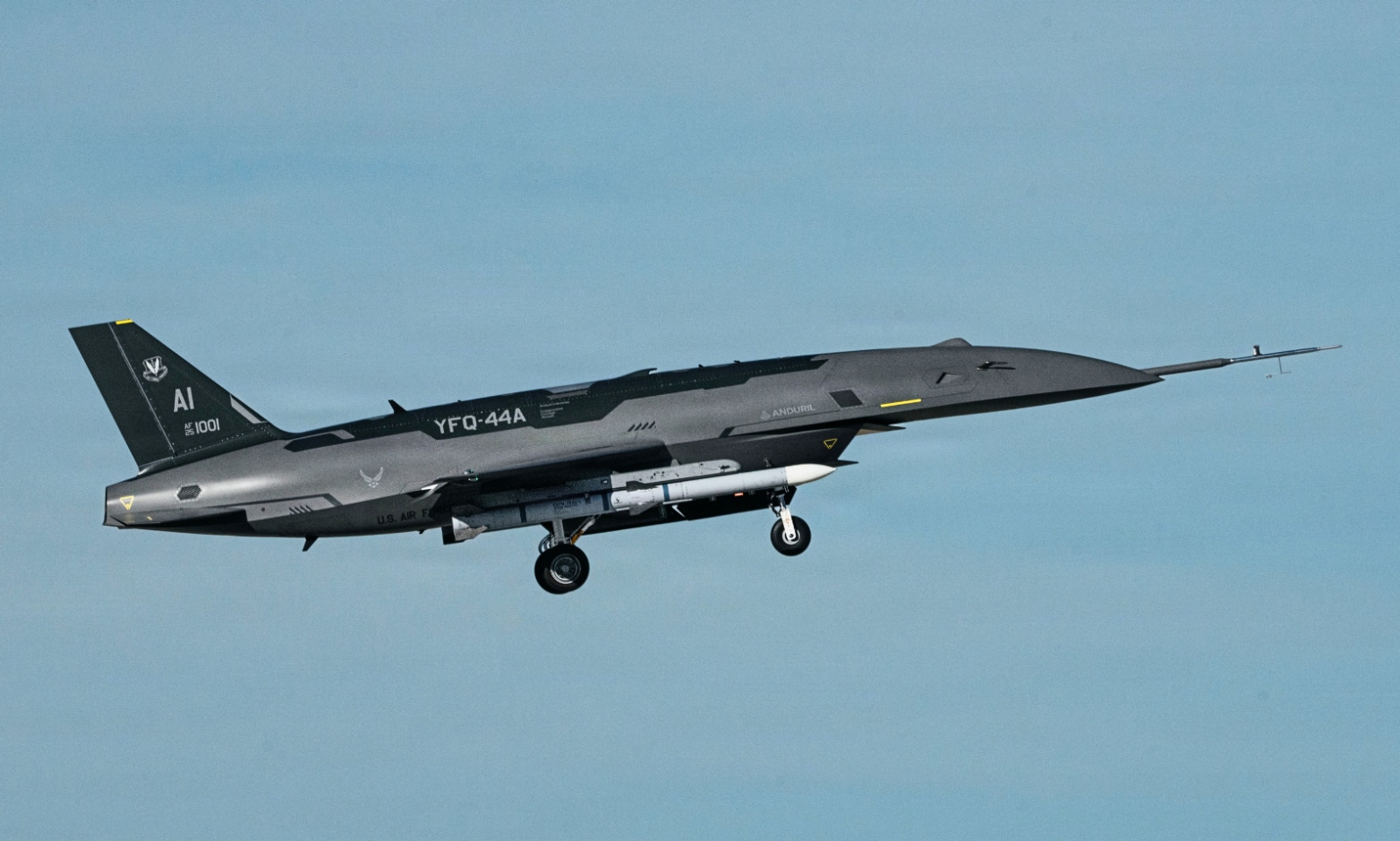 Anduril Industries’ YFQ-44A Fury has begun armed flight testing, with the U.S. Air Force releasing the first image of the drone wingman carrying an AIM-120 AMRAAM (Advanced Medium-Range Air-to-Air Missile) during captive carry evaluations.