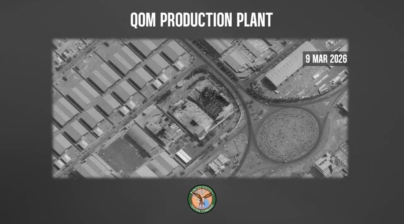 The U.S. Central Command (CENTCOM) posted two images on X depicting damage to the Qom Turbine Engine Production Plant in central-north Iran.
