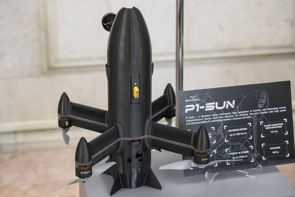 The P1-SUN, produced by Ukrainian defense tech firm Skyfall, carries a unit cost of approximately $1,000. Each successful Shahed intercept runs roughly $3,000 all-in, a decisive cost-exchange ratio against a drone that costs Russia an estimated $20,000 to $50,000 per airframe.