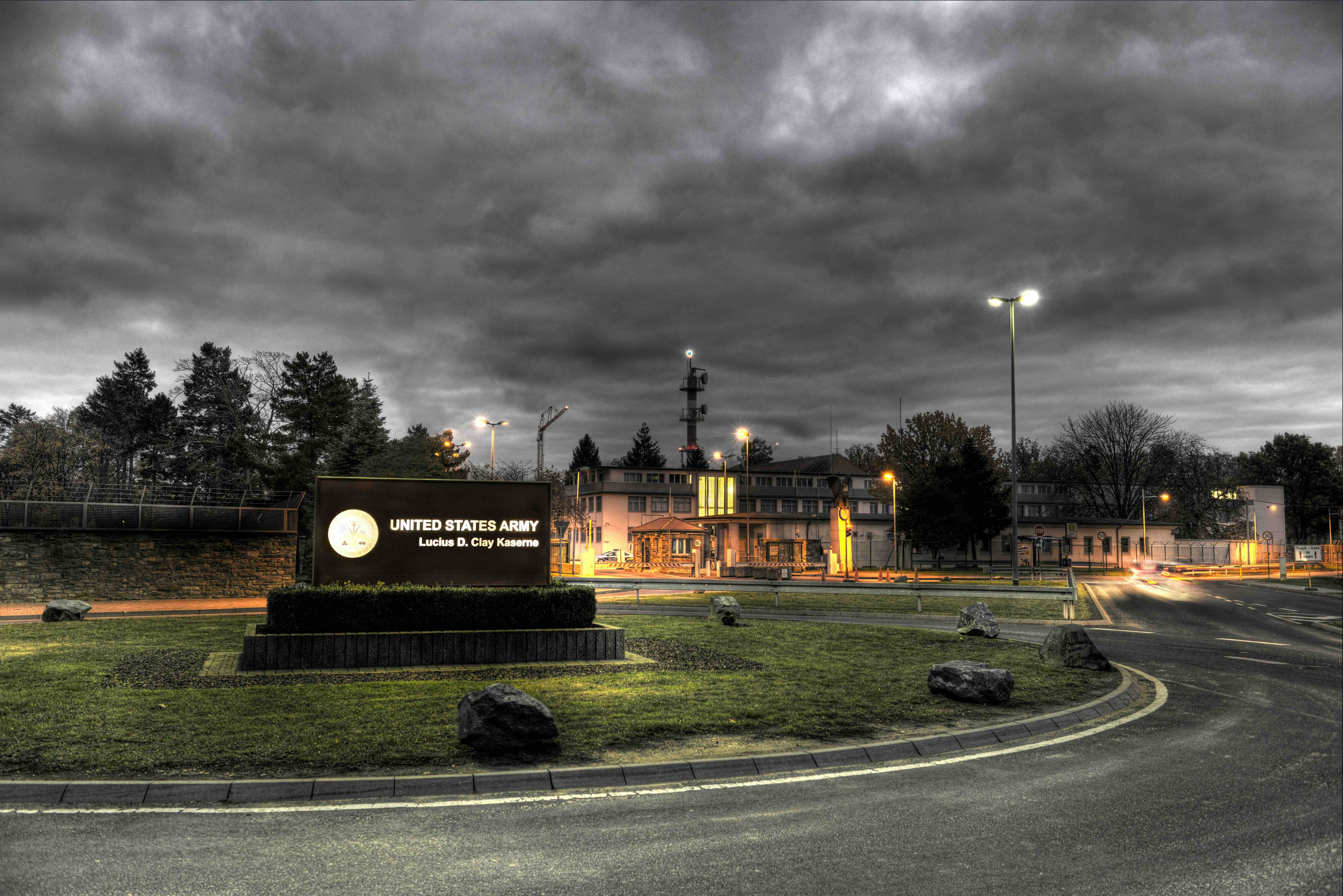 Entrance of Lucius D. Clay Kaserne, formerly Wiesbaden Army Airfield in Wiesbaden, Germany  (U.S. Army photo by Volker Ramspott)